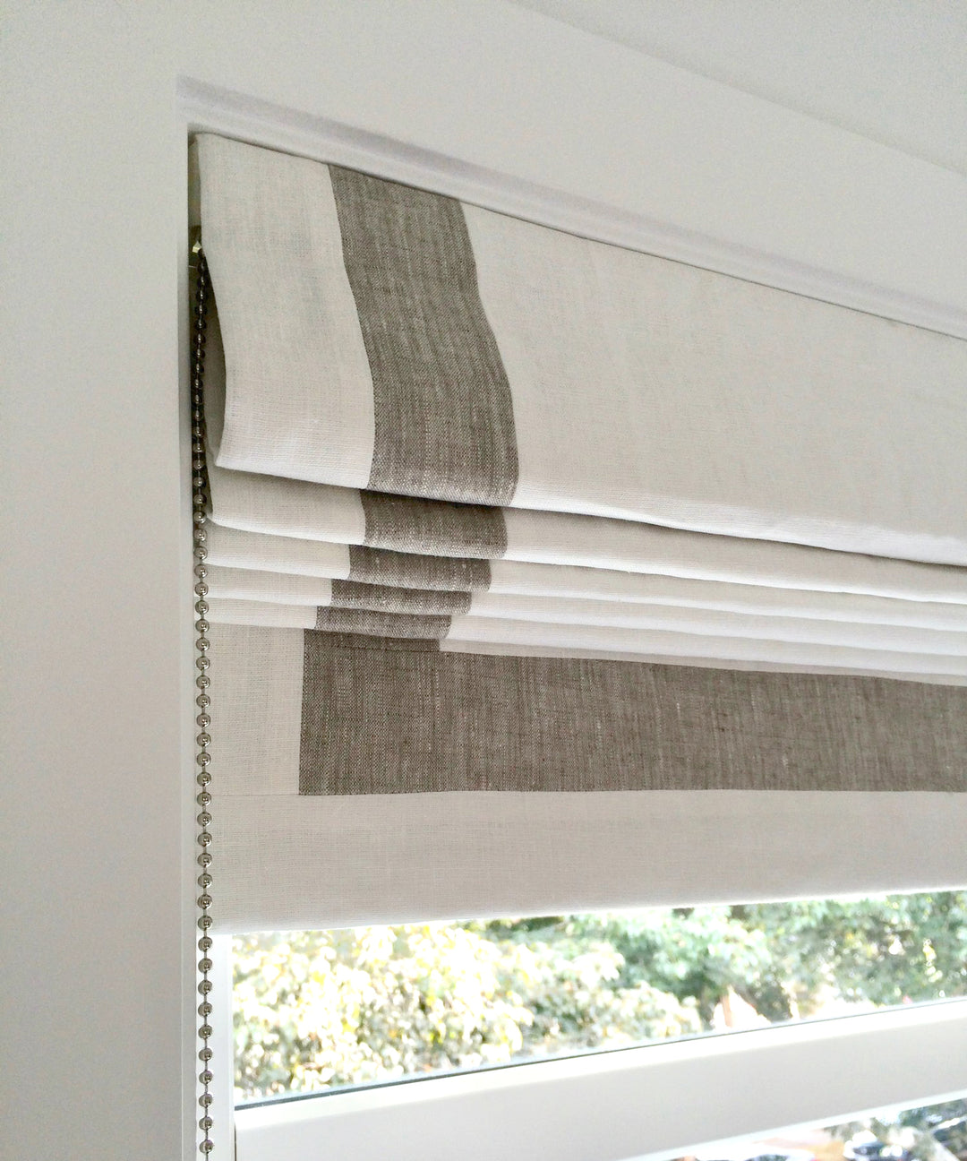 Roman shades are an elegant and classic style of drapery that present a smooth, flat finish. They work well in a variety of rooms and settings because of how they function, allowing either a full view when raised or complete coverage when lowered.